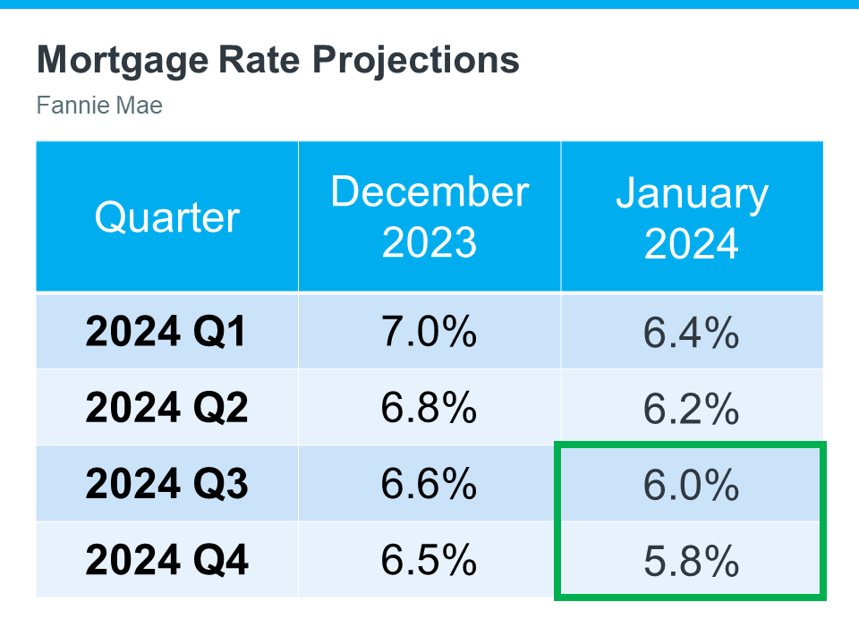 And he’s not alone in this forecast. The latest projections from Fannie Mae also suggest a possible sub-6% rate by the end of this year (check out the green box in the graph below):