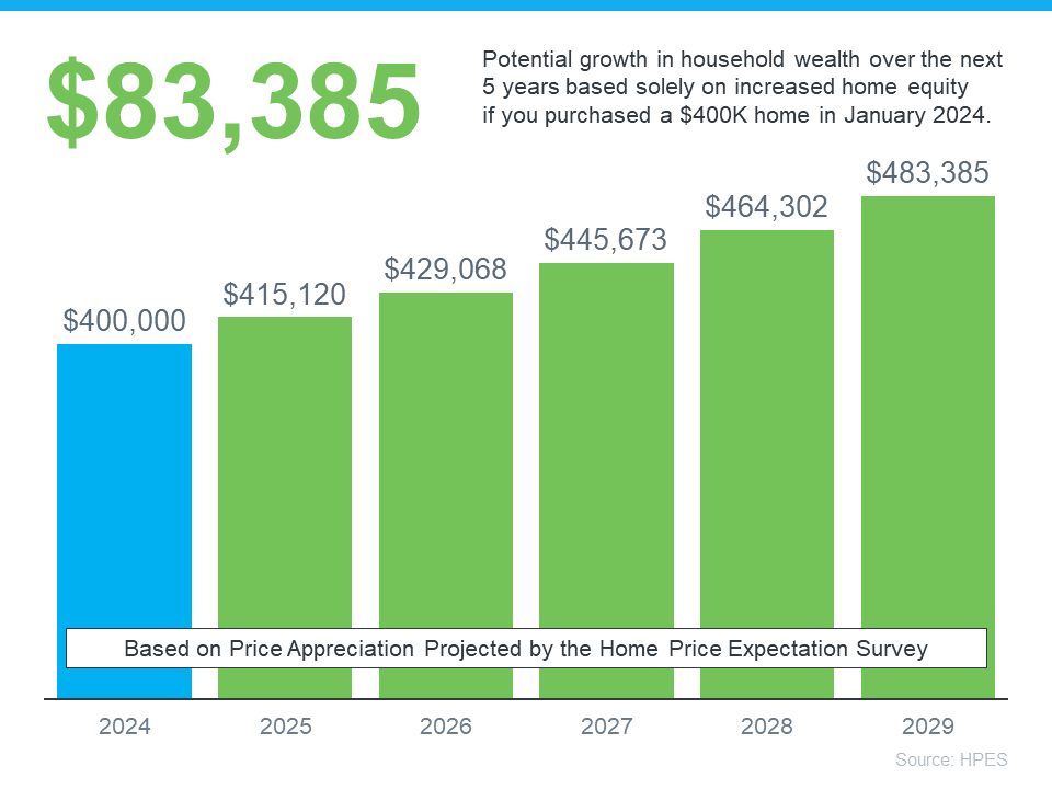 Say you snagged a $400,000 home earlier this year and plan to stick around for a while. According to the experts, if you hang tight for 5 years, you could be sitting on over $83,000 in added wealth as your home appreciates.