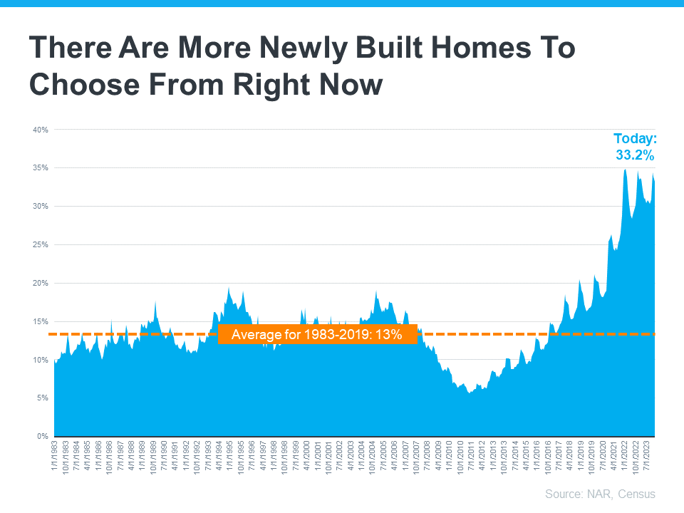There are two types of homes: new and existing. Right now, the market for existing homes is pretty tight, but new homes are becoming more common. In fact, newly built homes now make up over 33% of the housing market, compared to just 13% from 1983 to 2019. This increase can give you more options in your home search.