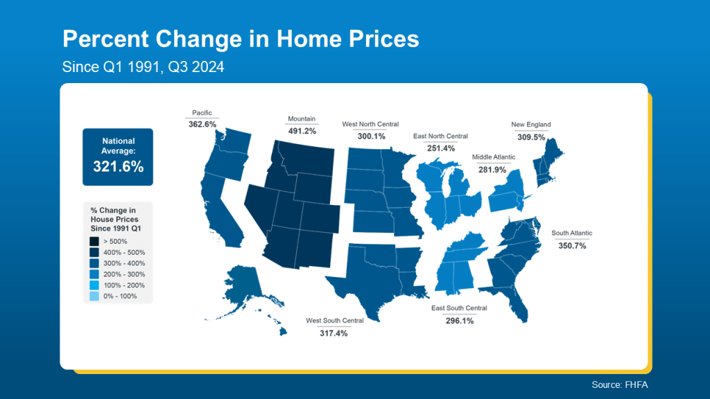 The second map shows that, over the last 30 years, home prices increased by more than 320% on average. This means that someone who bought a home 30 years ago probably saw their property value more than triple during that time—and that’s a huge reason so many people who bought years ago are still glad they did.